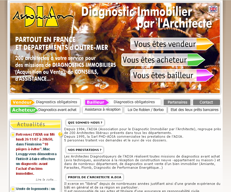 ADIA est une association pour le diagnostic immobilier par l'architecte. Elle regroupe près de 200 architectes libéraux présents dans tous les départements français et permet de traiter vos demandes rapidement et de réaliser le suivi.