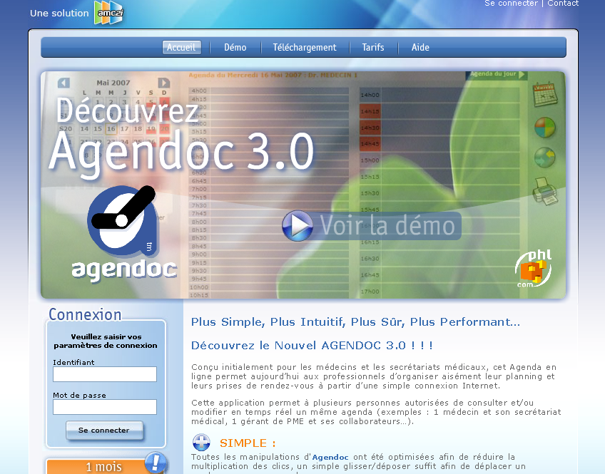 Il a été conçu initialement pour les médecins et les secrétariats médicaux, cet Agenda en ligne permet aujourd’hui aux professionnels d’organiser aisément leur planning et leurs prises de rendez-vous à partir d’une simple connexion Internet.