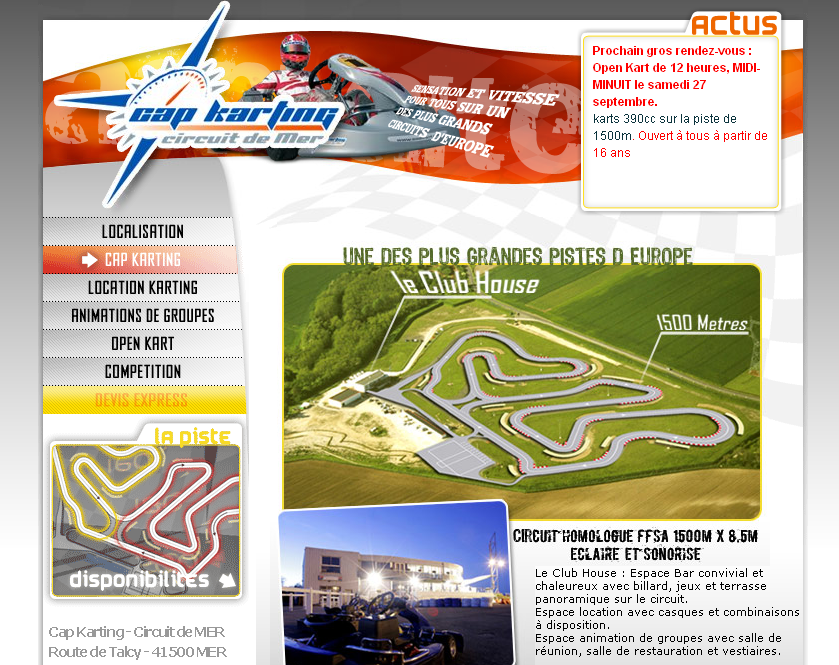 Cap Karting est un des plus grand circuit de karting d'Europe à environ 1H00 de la région Parisienne, aux portes des Chateaux de la loire.