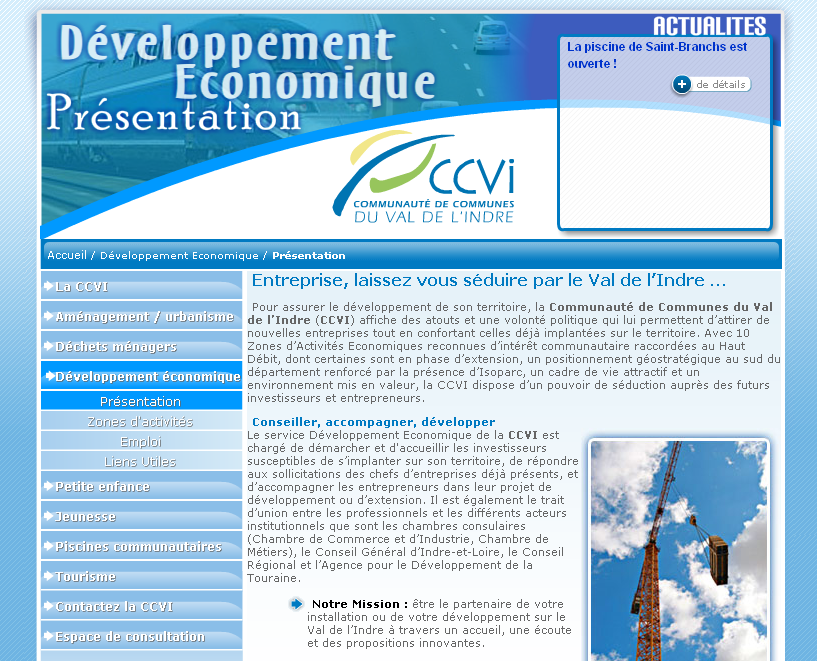 En tant que Concepteur Developpeur, j'ai été amené ,dans ce projet et celui de Saint-Epain, à réaliser un système d'affichage d'actualités (Flash/PHP/XML).