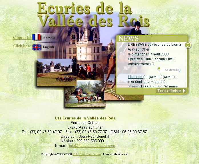 France-Ridingtours : Les Ecuries des la Vallée des Rois sont une Ecole d'équitation et tourisme equestre du Val de Loire. Elle est implantés au cœur d’une région privilégiée, tant par son climat tempéré que par son patrimoine culturel appelée "le Jardin de la France" et classée au Patrimoine Mondial de l'Humanité par l'UNESCO.
