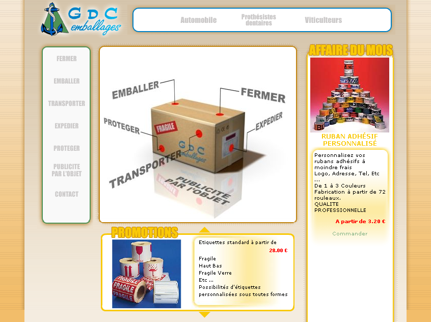 Gdc-Emballages commercialise des produits d'emballages : rubans adhésifs neutres et personnalisés, sérigraphie, publicité, film etirable, cartons, sacs, etiquettes adhesives, etc...